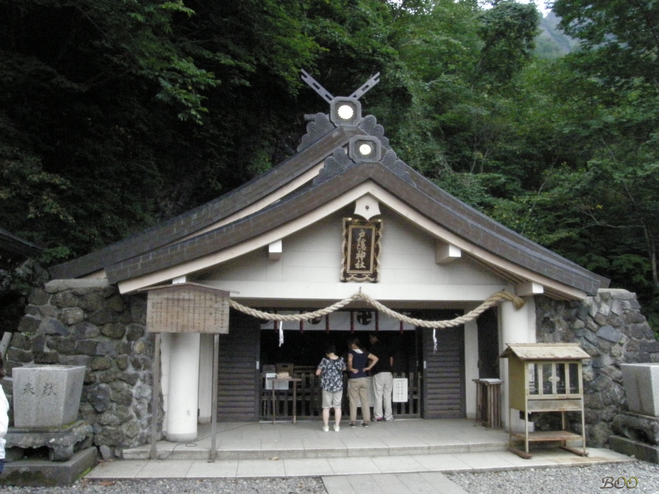 ガイドブックによって書いてあることは若干違いますが、真ん中あたりにある随神門まで20分ぐらい、その先また20分ぐらい歩くと九頭龍社と奥社につきます。