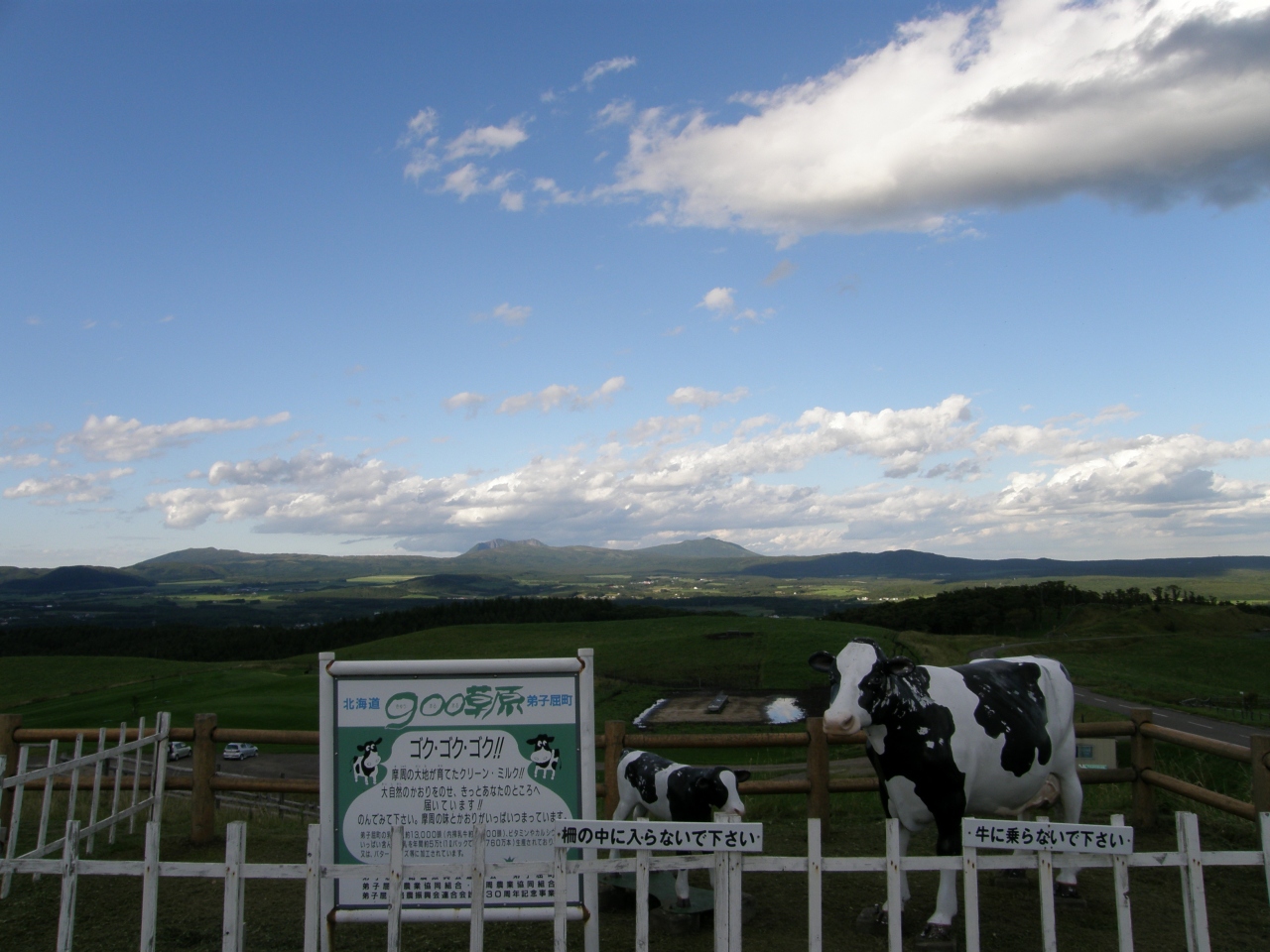 展望台があってそこから360度の景色が見られ、とてもきれいです。もちろんそこからも牛さん見えますが、豆粒でした。