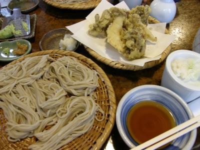 そばがき、ざるそば、きのこのてんぷら。