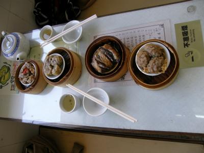 飲茶はすでに蒸されていて蒸篭が積み上げられていました。