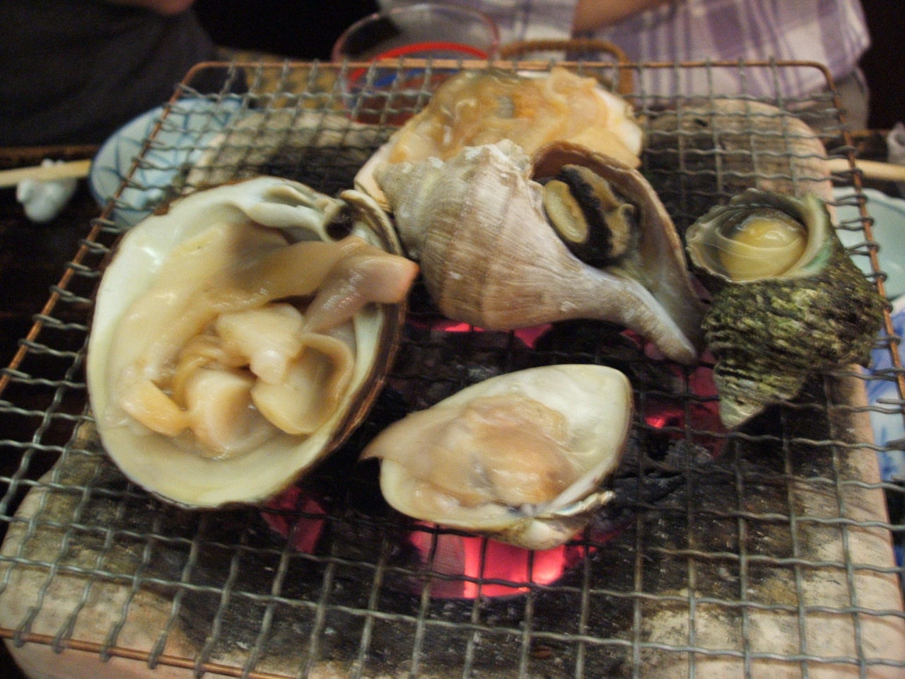 中でも目の前に七輪を置いて貝を炭火焼で食べたのは、