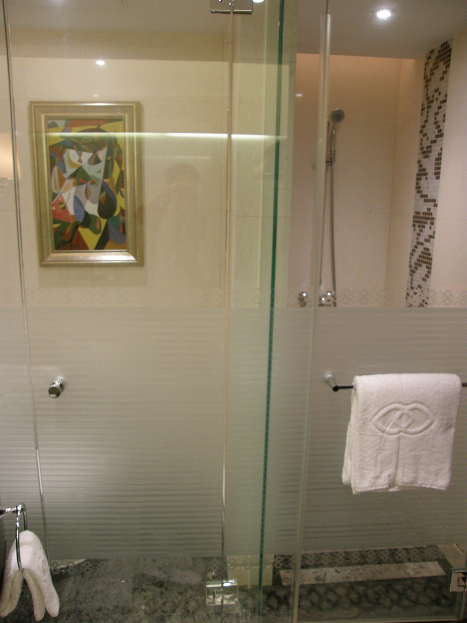 私たちは今回CITY側の部屋でしたが、窓からはグランドリスボアなど近代的な建物や、ごちゃごちゃした低い建物がみえ・・・そしてよく見てみると、聖ポール天主堂跡が見えるではないですか!!ソレも真横から!!!なので電柱のように見えます(笑)
