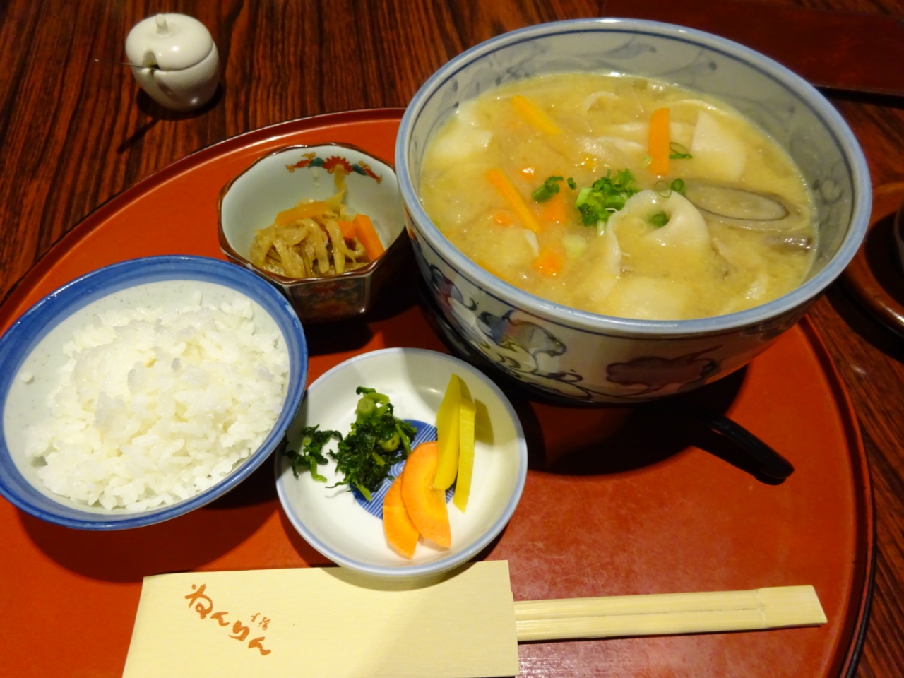 注文したのは豊後汁。大分を代表する郷土料理の「だんご汁」ですね。具沢山のみそ汁にほうとうのようなおだんごが入っていて、味は豚汁です。量もたっぷりあり、とってもおいしかったので、おすすめです。- 旅行時期