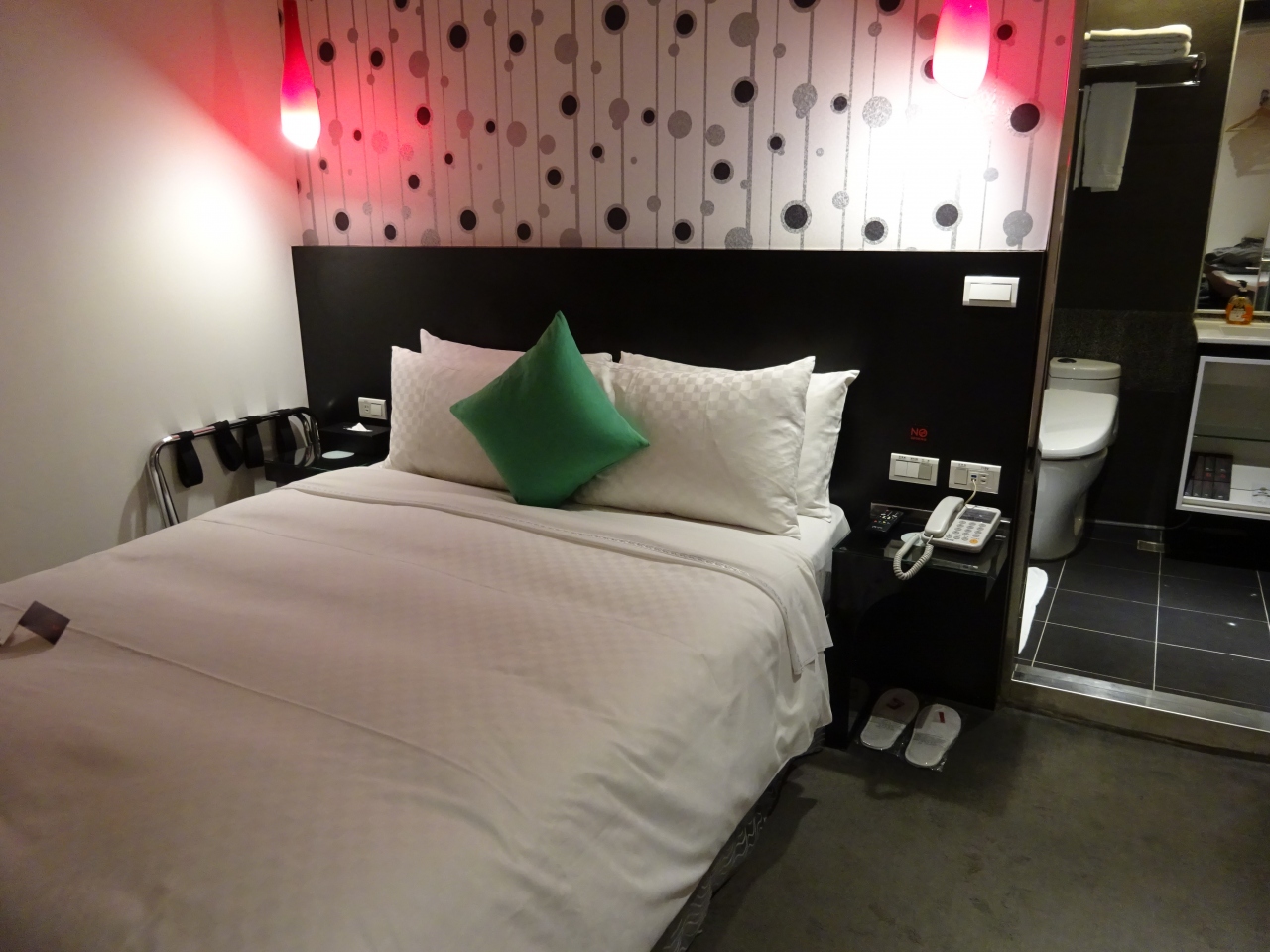 寝るときに部屋の明かりを消したいのに、なぜかバスルームの明かりだけ消えず、思案した結果、ルームキーを抜くことで解決しました。また、壁がかなり薄く、左隣のお部屋は日本人のご夫婦とわかるほど…。