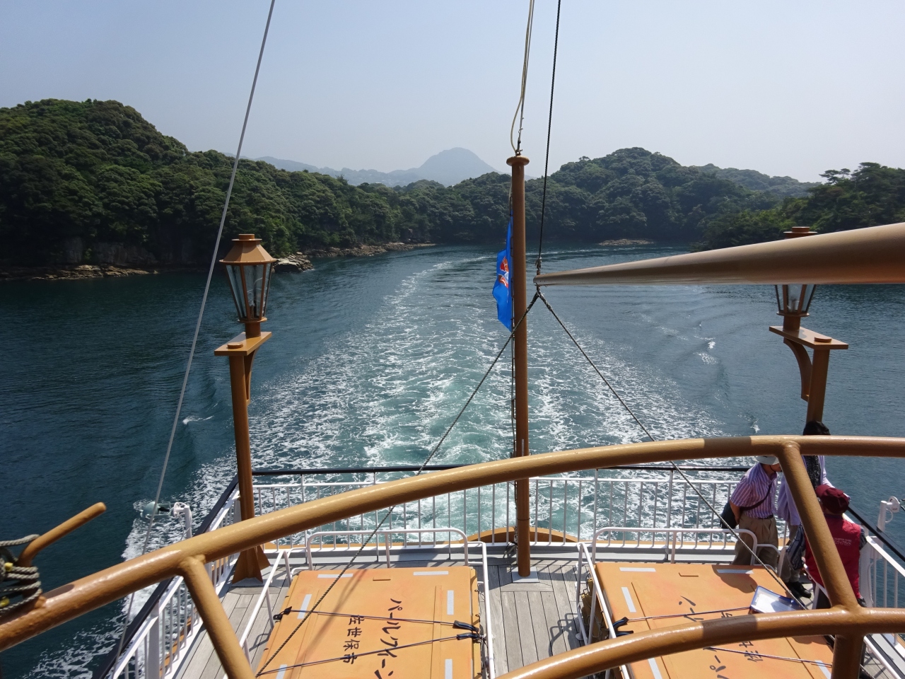 この日は晴天でしたので、もちろん甲板に上がって景色を眺めながらのクルージング ちょう季節が良かったのか、私たちが乗った午前の便は風が心地よく、1時間の島巡りはとても楽しかったです。