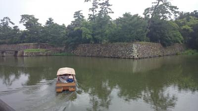 降ったりやんだりで当てもなく城の回りをぐるり。雨でもお舟は営業中。