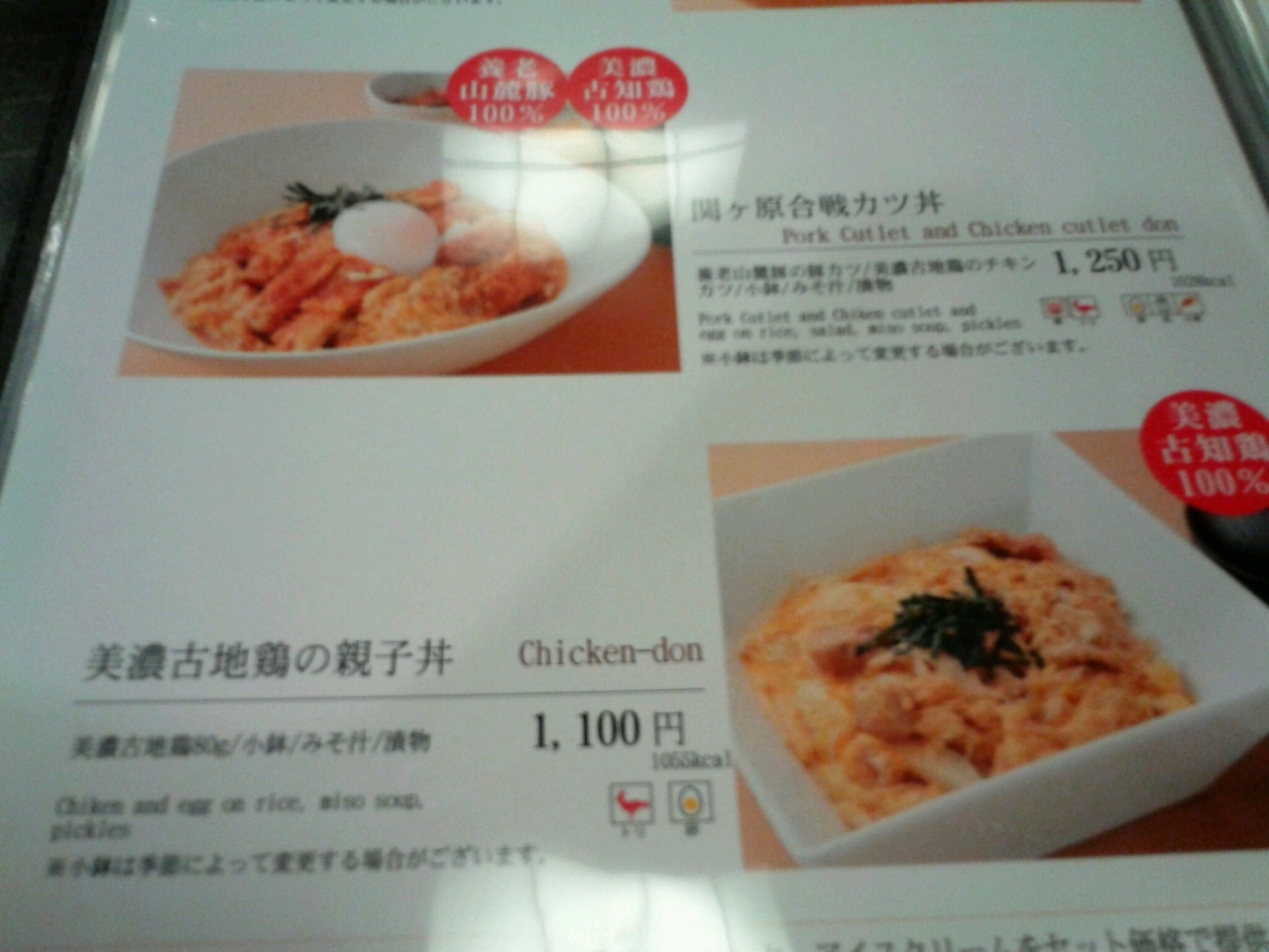 名古屋方面への上り養老サービスエリアで最後の休憩をしようと思い混雑している日曜日に駐車場に入れたので、夕食をすることにしました。ゆっくりできるレストランが奥にあったので、靴も脱げて地元の飛騨牛、美濃鶏、豚を食べさせる店でした。夫は飛騨牛スタミナ丼、私は欲張って鶏と豚の関ヶ原合戦丼にしました。肉は柔らかくジューシーで美味しく頂きました。食事をするとソフトドリンクが200円になりコーヒーも楽しみました。