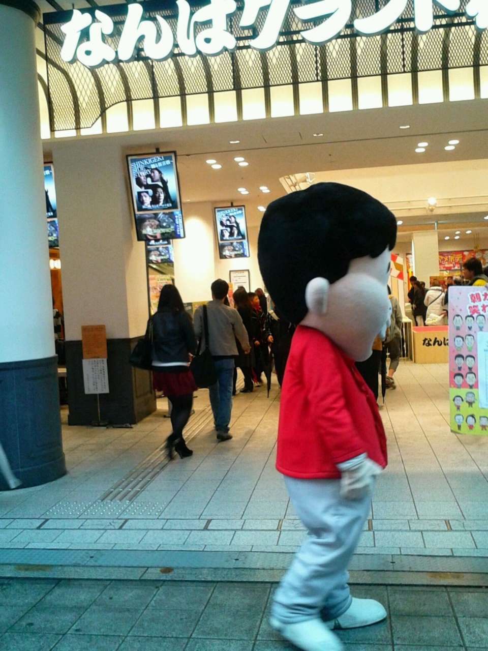 春休みということもあって、なんばグランド花月の前には各地から数人?のご当地キャラクターが集合していました。その中にさんま?の着ぐるみもいるではありませんか!何度か花月には行っていますが、初めて見たので急いで写真を撮りました。