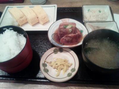 なんば花月から道具街へ向かうとすぐ脇道に入った場所にあるので、観光客もお値打ちに食べられるお店です。日替わりランチは750円で、ほとんどの方がオーダーするお値打ち商品です。私は大阪と言えば、だし巻き卵定食が定番のように食堂にはあるので、食べ比べを楽しみに見つけては食べています。東京は甘い卵が主流ですが、大阪は出汁が決め手で、副菜の角煮もきんぴらも美味しかった。開店すぐに入店したので、ご飯も炊きたてで満足のランチタイムでした。
