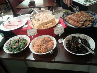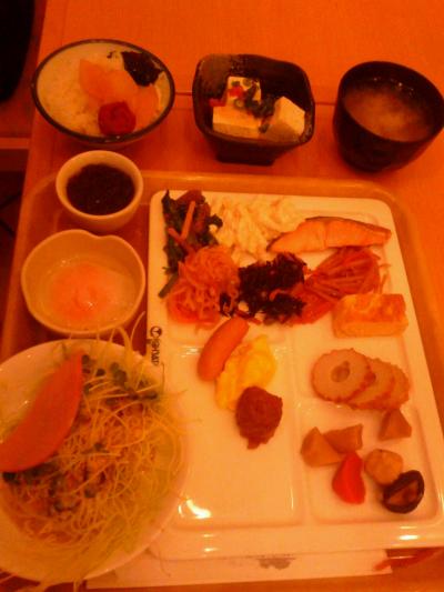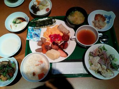 出雲大社に行く一畑電車の駅直結で、JR出雲市の前で便利な場所にありました。朝はバイキングでドンクのクロワッサンも味わえました。夕食は和洋が選択で、和食膳にしました。1ドリンクの生ビールもサービスで、小鉢の鰤がプリプリしていました。天ぷらもしじみ汁も熱々で、鶏肉の味噌焼き、出雲そば、かやくご飯、デザートに抹茶アイスと白玉ぜんざいと出雲名物が頂け、コーヒーで締めくくりました。部屋も27?のツインで寛げました。