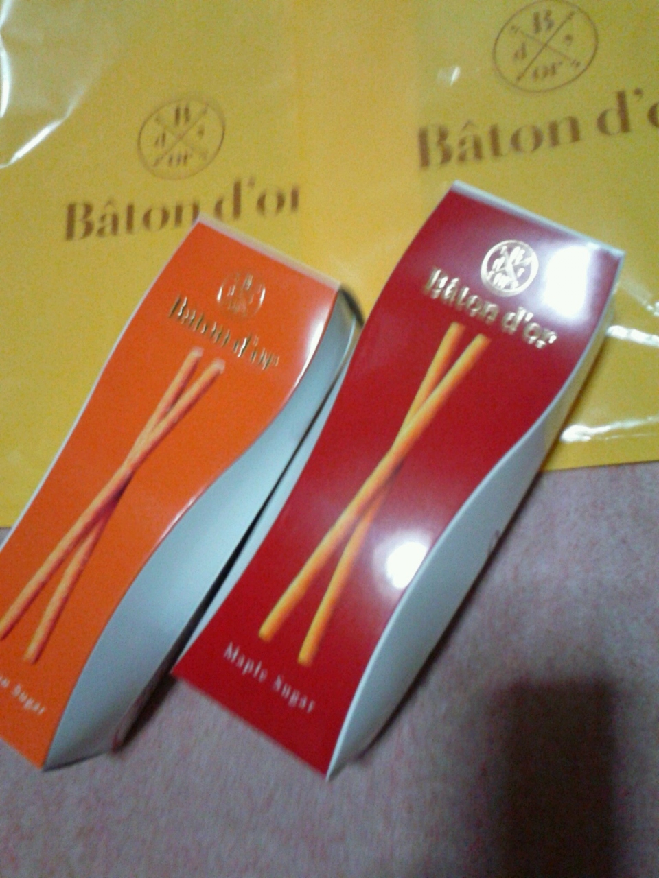 グリコの大人のお菓子?ちょっとリッチなリッツです。普通のリッツはどこでも購入できますが、バトンドールは梅田阪急と難波高島屋でしか購入できません。一番購入できないのが、午前中には完売するミルク。チョコレートのリッツで要冷蔵商品。売れ筋はシュガーで一番入荷が多いと店員さんが言っていました。お土産に喜ばれたのは、ストロベリー、メープルです。