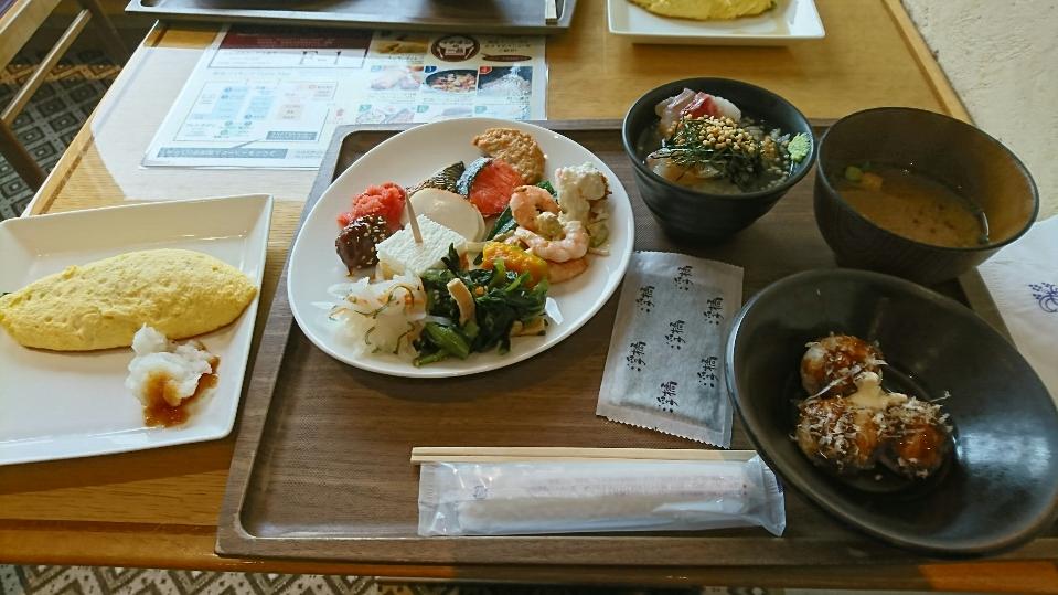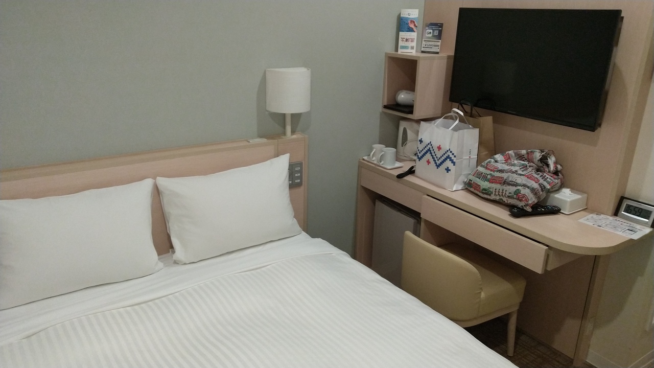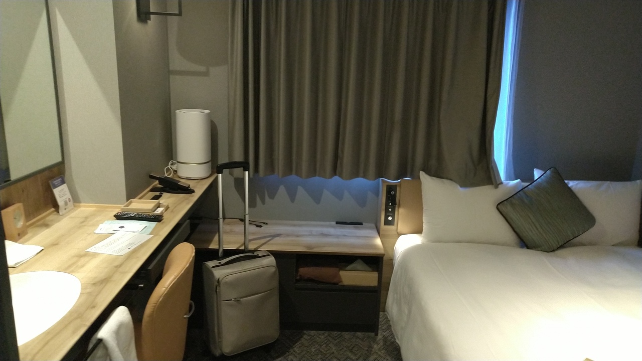 雨が降っていたので、 チェックイン前に荷物を預けて傘も貸して頂きました。信号を渡れば傘いらずですが、街歩きもしたかったので助かりました。客室はトイレ、バス、洗面が別々でベットも広くて寛げます。ただ、3階だったので高速道路の車が動くのが目線に入り気になりました。夜食サービスのお茶漬けもミネラルウォーターも嬉しい。朝食のバイキングも地元食、和洋と豊富で私としてはアクアパッツァが美味しかった。