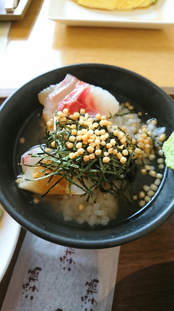 鯛茶漬けにオープンキッチンで焼かれるオムレツと名物の塩プリン。