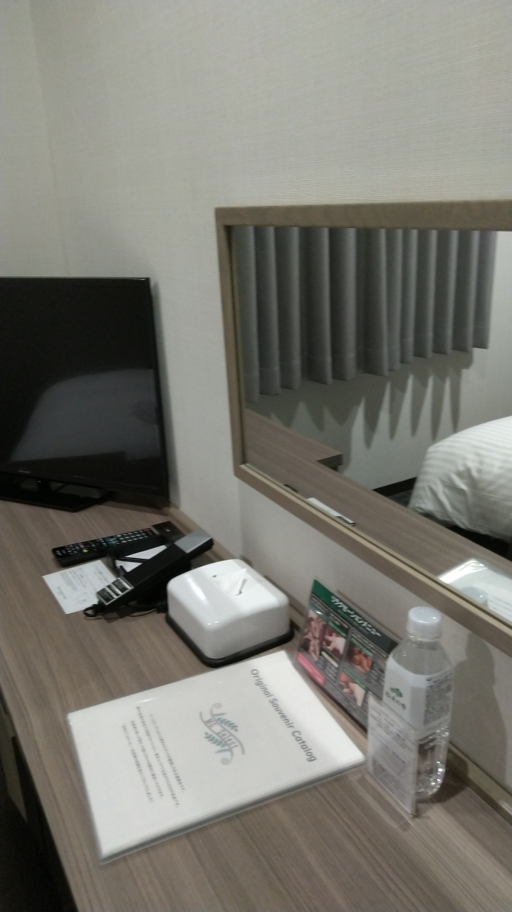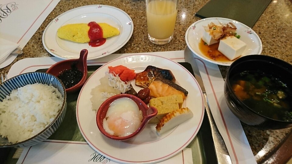 客室はコンパクトで、トイレットペーパーのピンク色にはびっくり。ミネラルウォーターのサービスもあり、朝食なしでの宿泊でしたがお値打ちに頂けるということで、和食をオーダーしました。これがまた美味しかった。- 旅行時期