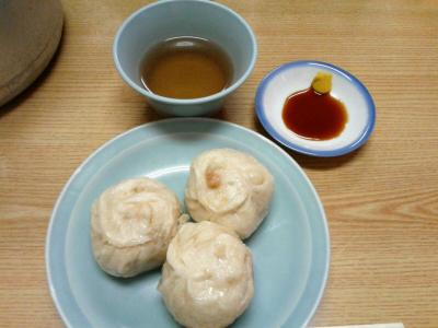 店内では3個から相席のテーブルで食べることが出来て、お茶と醤油、からしが用意されています。