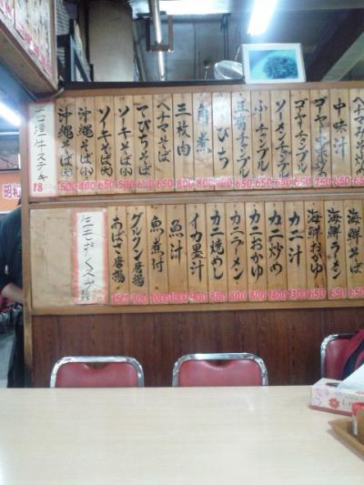 一番混雑しているこちらのお店でメニューを見るとそばのミニサイズがあったので、沖縄そばとソーキそばをオーダーしました。