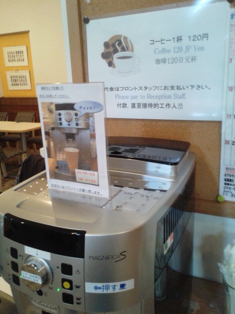 フロントの横に24時間飲み放題のコーヒー、水、泡盛が用意されています。