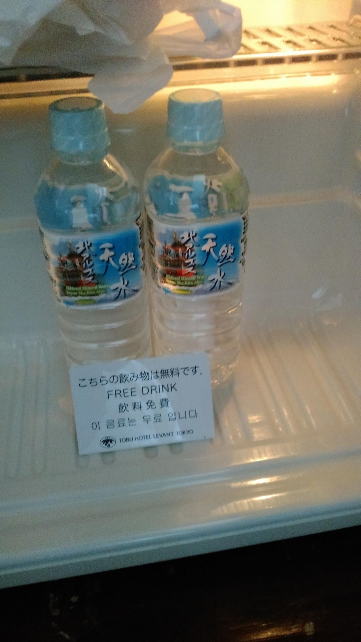 客室は広々としてゆったりと過ごせ、ミネラルウォーターのサービスもありました。