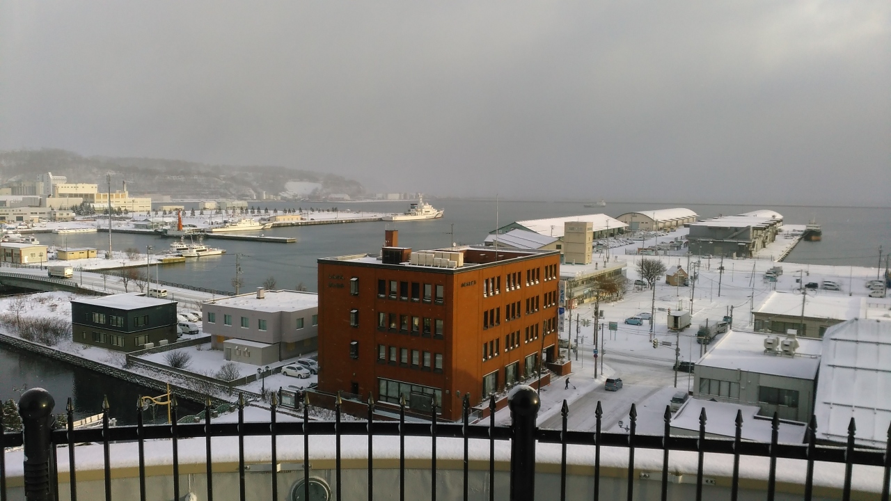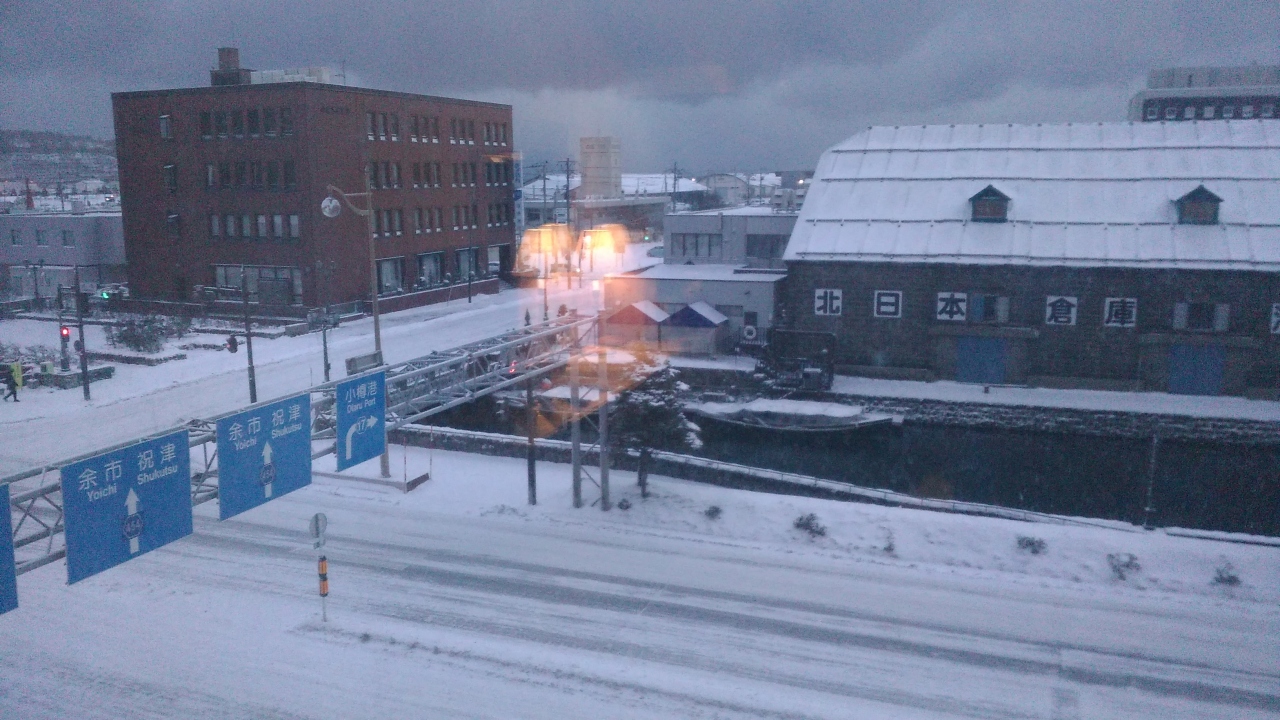 小樽駅から直線に運河方面へ向かうと角地にあります。