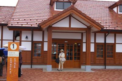 新宿から高速バスで1時間半、着いた河口湖駅はモダンな造りです。