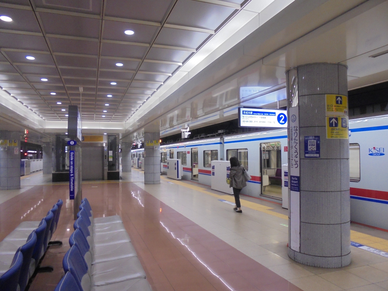 ANAの係員は 搭乗客を京成改札口まで車いすで案内していました。