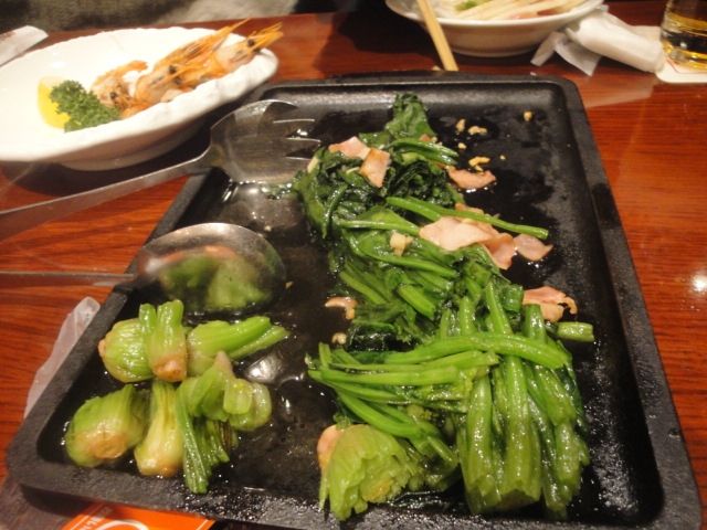 料理 比較的 早く出てきます。ムール貝 ワイン蒸しは300円追加で パスタ料理になります。 ほうれん草炒め:単純でおいしい!