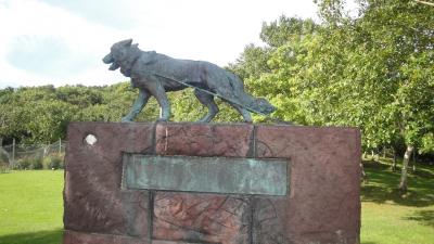 日本初の南極観測に貢献したカラフト犬の慰霊碑です。悪天候で基地に置き去りにされました。1年後、奇跡的に生きていた<タロウ><ジロウ>は日本に青函しました。訓練基地であった稚内公園に記念碑がたてられました。