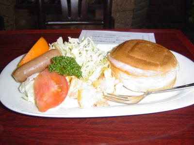 10:30 までは朝食menuです。当日は雨なので床濡れていました。コーヒーコボした人いました。