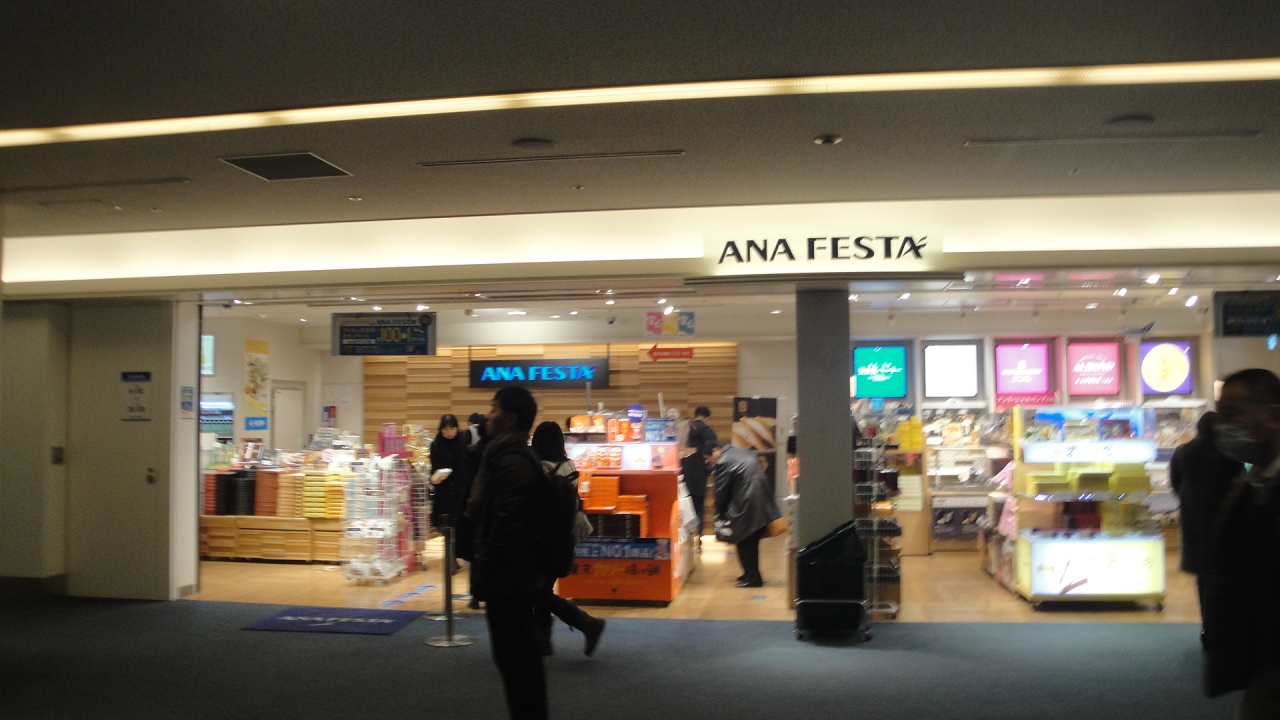 東京土産購入できます。品数は搭乗ゲート前のANA FESTAのほうが豊富です。