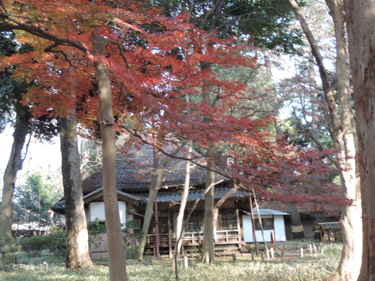 ここの紅葉は遅く、12月の中旬が一番の見ごろである。草ぶきの蘆花の旧居とその庭の紅葉の素晴らしさは、都内とは思えぬ風情がある。近くに蘆花夫妻の墓もあり、その付近の紅葉もまたいい。蘆花公園の駅から15分ほど歩くことになるが、途中に世田谷文学館もあり、楽しい散歩道になっている。