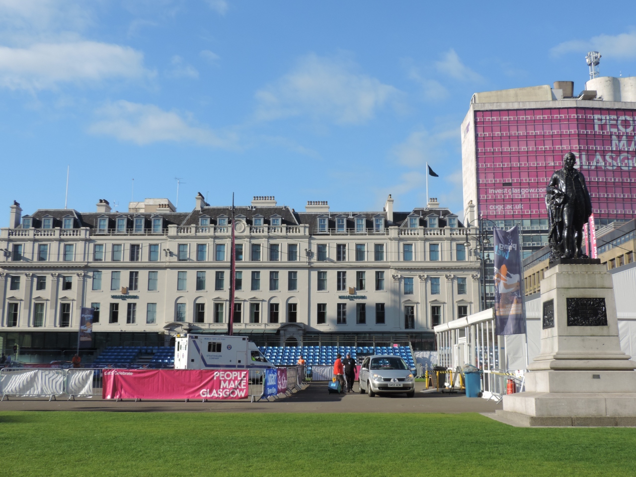 クイーン・ストリート駅まで1分。スコットランドの旅はセントラル駅よりこの駅のほうが便利である。内部は実に立派で高級感にあふれている。窓からはジョージスクエアが見渡せ、グラスゴーの中心にいるのだと実感できる。
