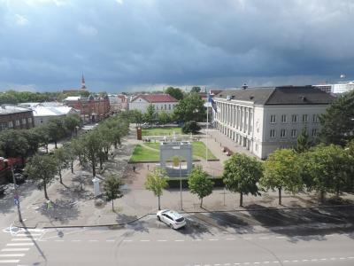 エアスクエア(公園)の前、鉄道駅の隣、長距離バスセンターから5分弱という交通至便の位置にある。街を散歩して疲れた時に戻って一休みするのにもいい。外観は目立たないが、内部は立派である。朝食も種類が多く美味である。