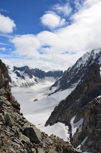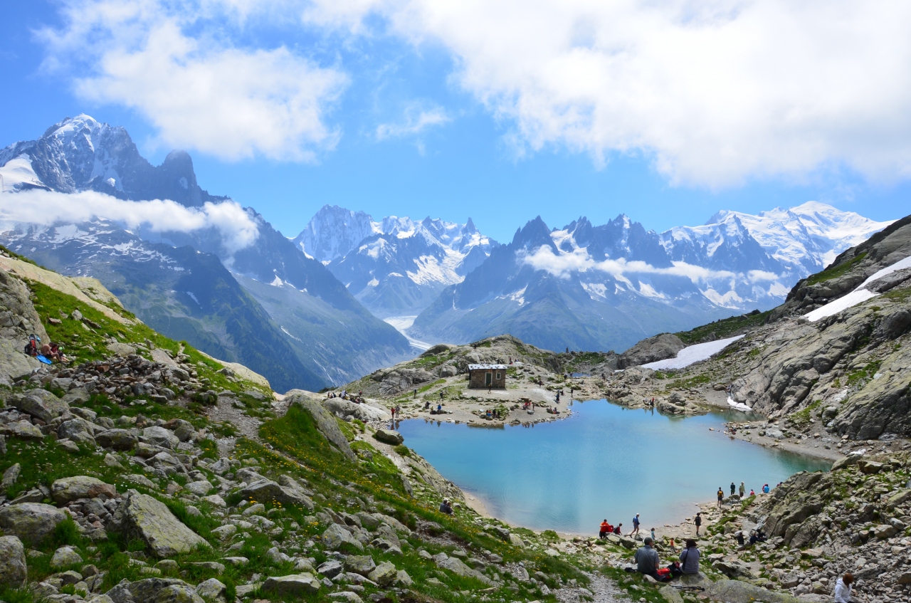 あまりの美しさに白銀の連山と、それを映す湖面を呆然と見つめる。空腹を感じて山小屋で昼食。いろいろな種類のオムレツがあって10ユーロで満腹。帰りはひたすら山を下り、フレジュールまで2時間弱。最高のハイキングだった。- 旅行時期