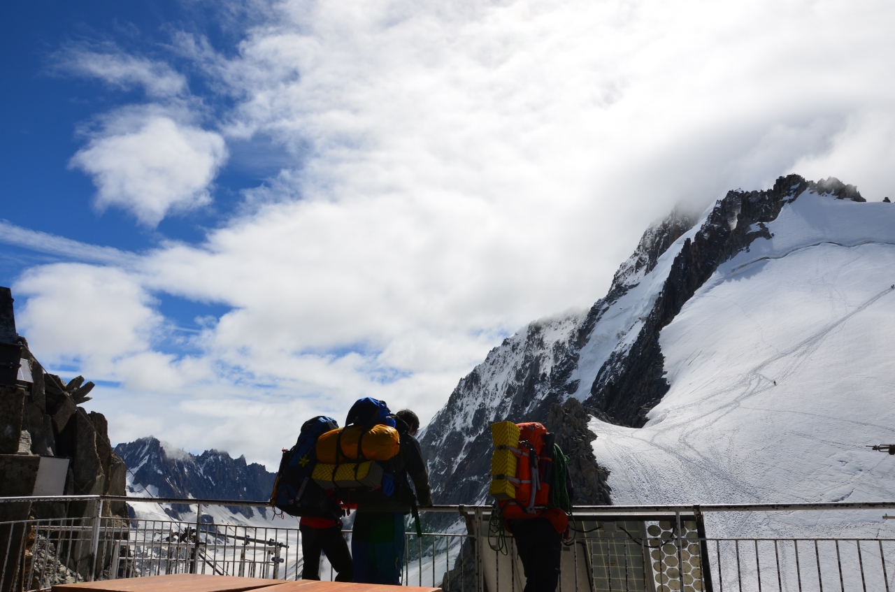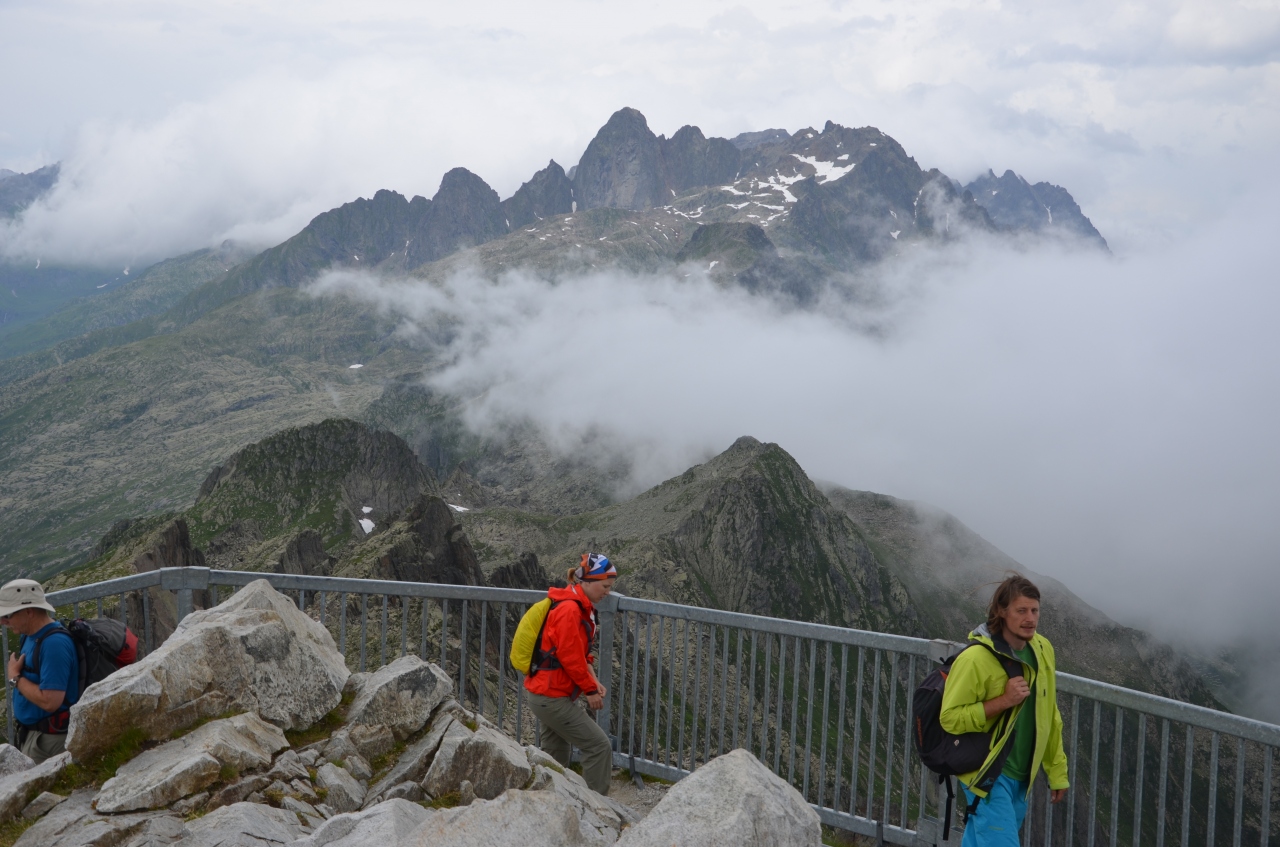 エギュイユ・デュ・ミディが混雑しているのに比べて、グランモンテはのどかな雰囲気。ロープウエイを待つこともな、一気に3275mの展望台へ行ける。モンブラン山群からスイス・イタリア・フランスの国境の山々までの大展望が楽しめる。