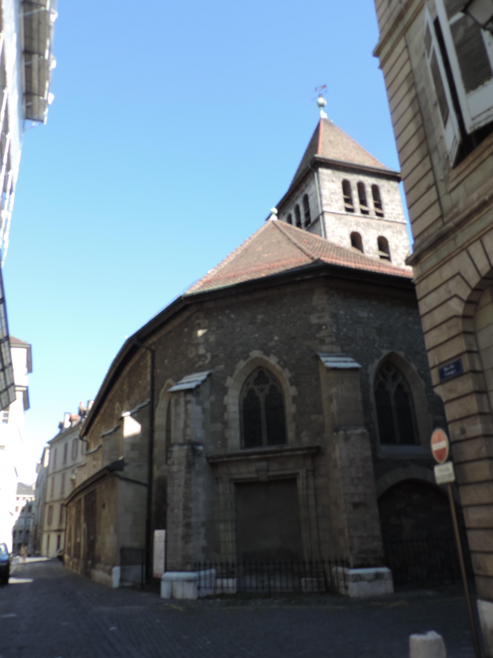 ジュネーブの歴史に満ちた旧市街の一角に堂々とそびえている。訪れたのは、日曜日の10時少し前だった。ミサを告げる鐘の音が旧市街に鳴り響いている。聖堂に入って一休みする間もなく、観光客は外に出るよう指示された。