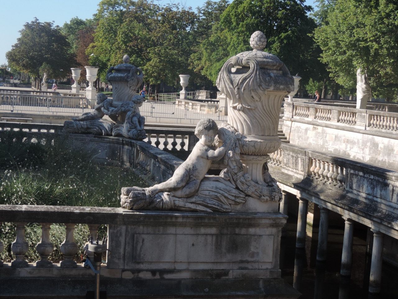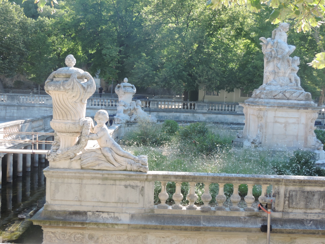 ニームの駅から30分ほど。円形競技場やメゾン・カレを過ぎて、丘のふもとに広がる公園に着く。古代ローマ人が信仰していた聖なる泉のあった場所。白鳥と黒鳥が遊ぶ池のまわりのは何体のも彫刻が並び、豊かだった古代の息吹が感じられる。