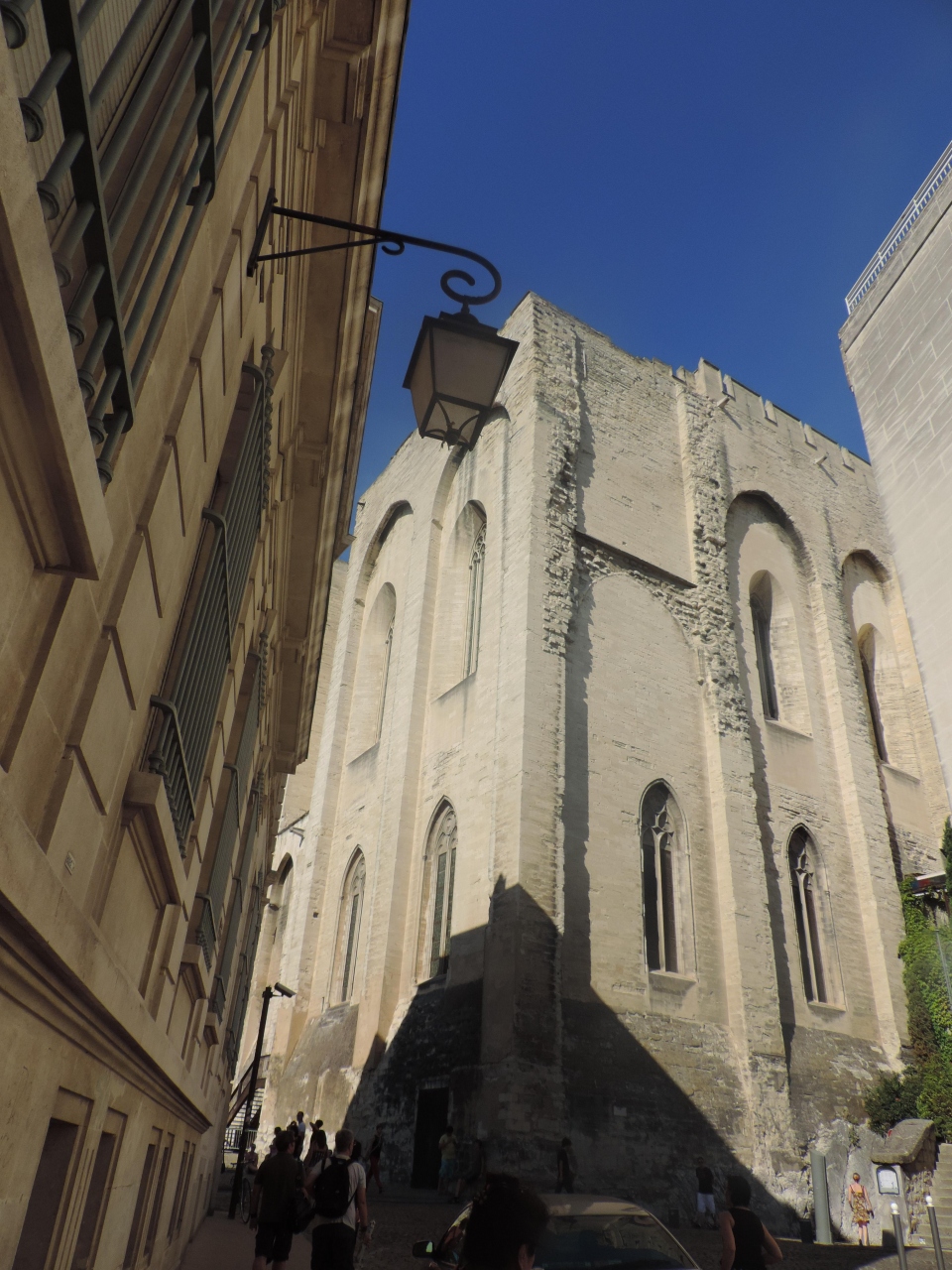 時計台広場の奥に巨大な壁があり、その下に入口がある。入場するとかつての法王の居住したところから、執務をしたところ、さらに貴重品をしまったとこるなど見学できる。ただ、あまりにも広く、一度中庭に出てまた階段を上るというように見学はかなりハードだった。また、フランス革命のときに破壊されたためか、殺伐とした部分も多い。