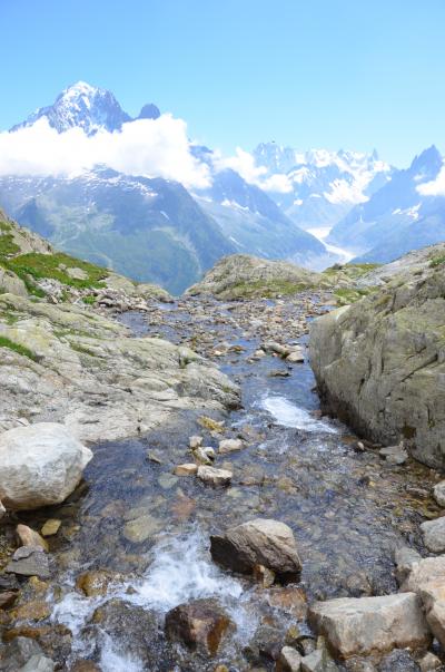 国鉄のアルジャンティエールから10分ほどで登り口に。バスならシャモニーから20分くらいで。なお、ロープウエイの乗り換え駅ロニャンで下りると高原ハイキングが楽しめる。- 旅行時期