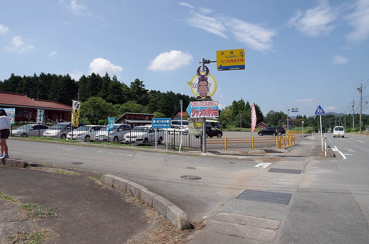 駐車場は、むつみ昆虫王国の入り口にある商業施設「きっちんばーばぁ」を利用できます。
