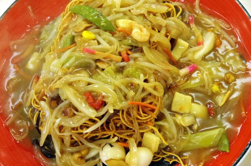 出てきてビック、かなりの量の堅焼きそば風の料理が出てきました。
