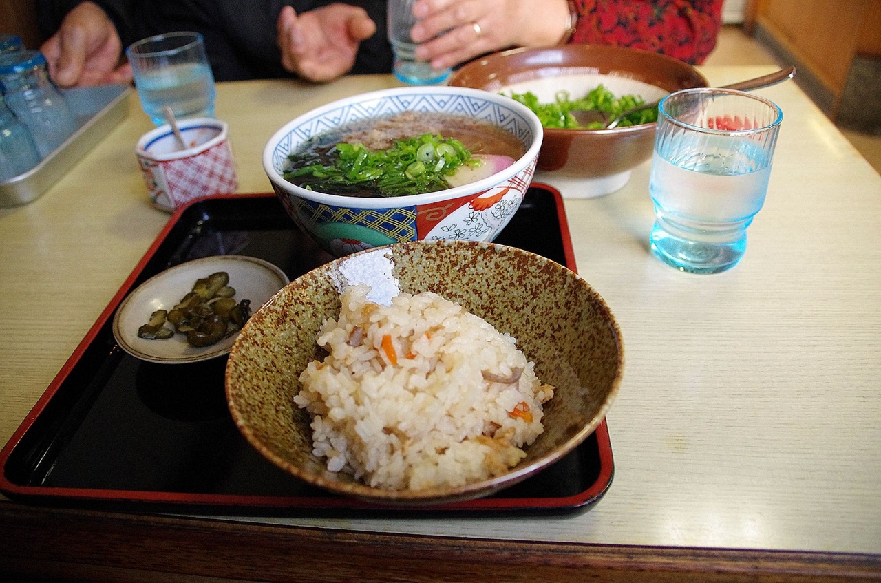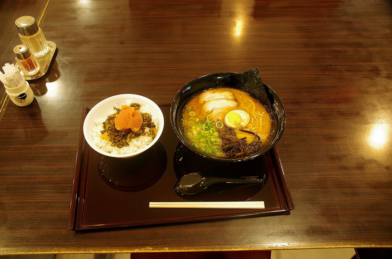 一緒にセットになっていた宮原ライスはご飯の上に辛子明太子と辛子高菜が乗せてあるものでしたが味が喧嘩しているようで美味いとは感じませんでした。