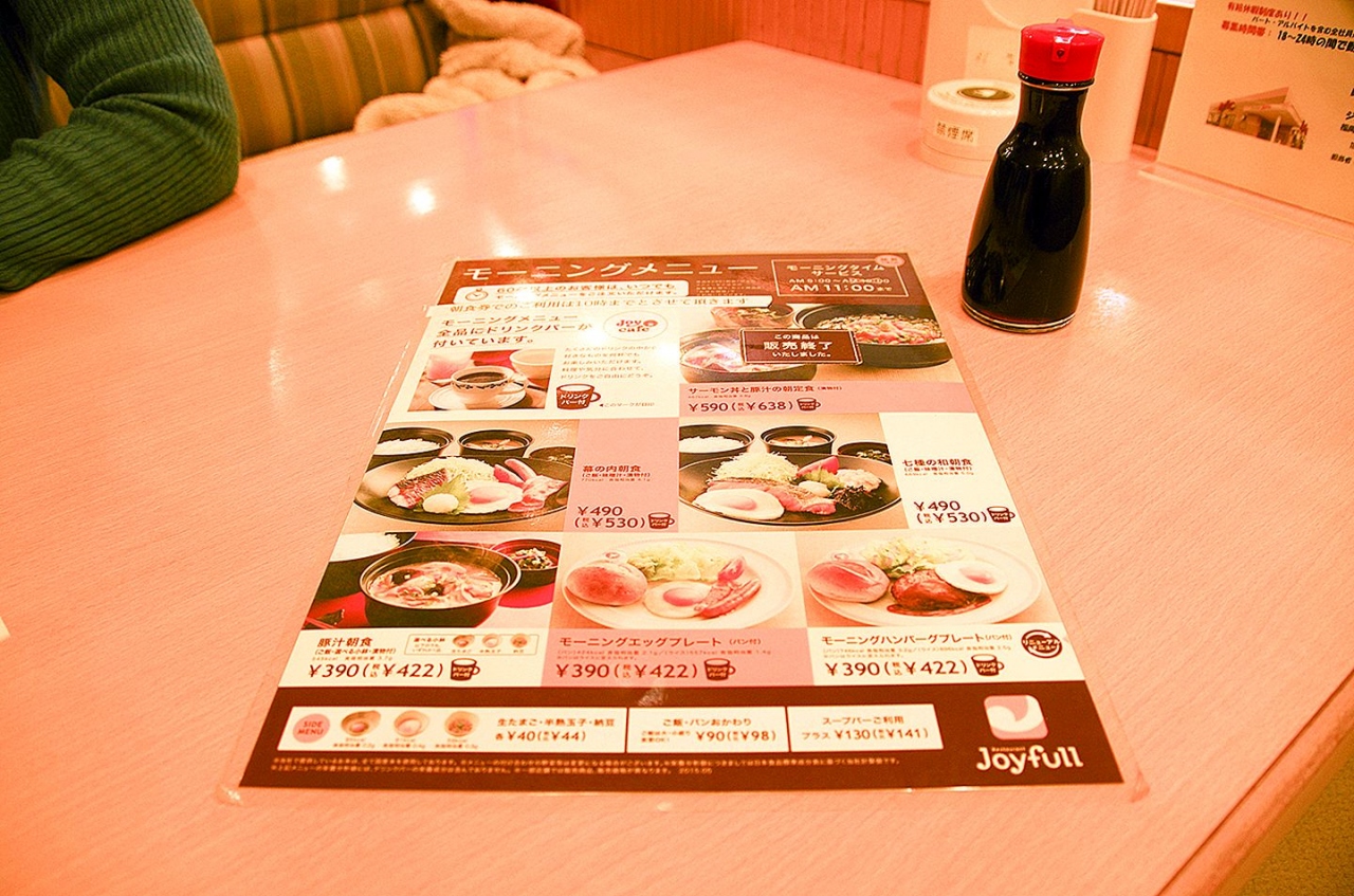 朝食、夕食は階下のレストランが便利ですが、現状ではジョイフルの方をオススメします。