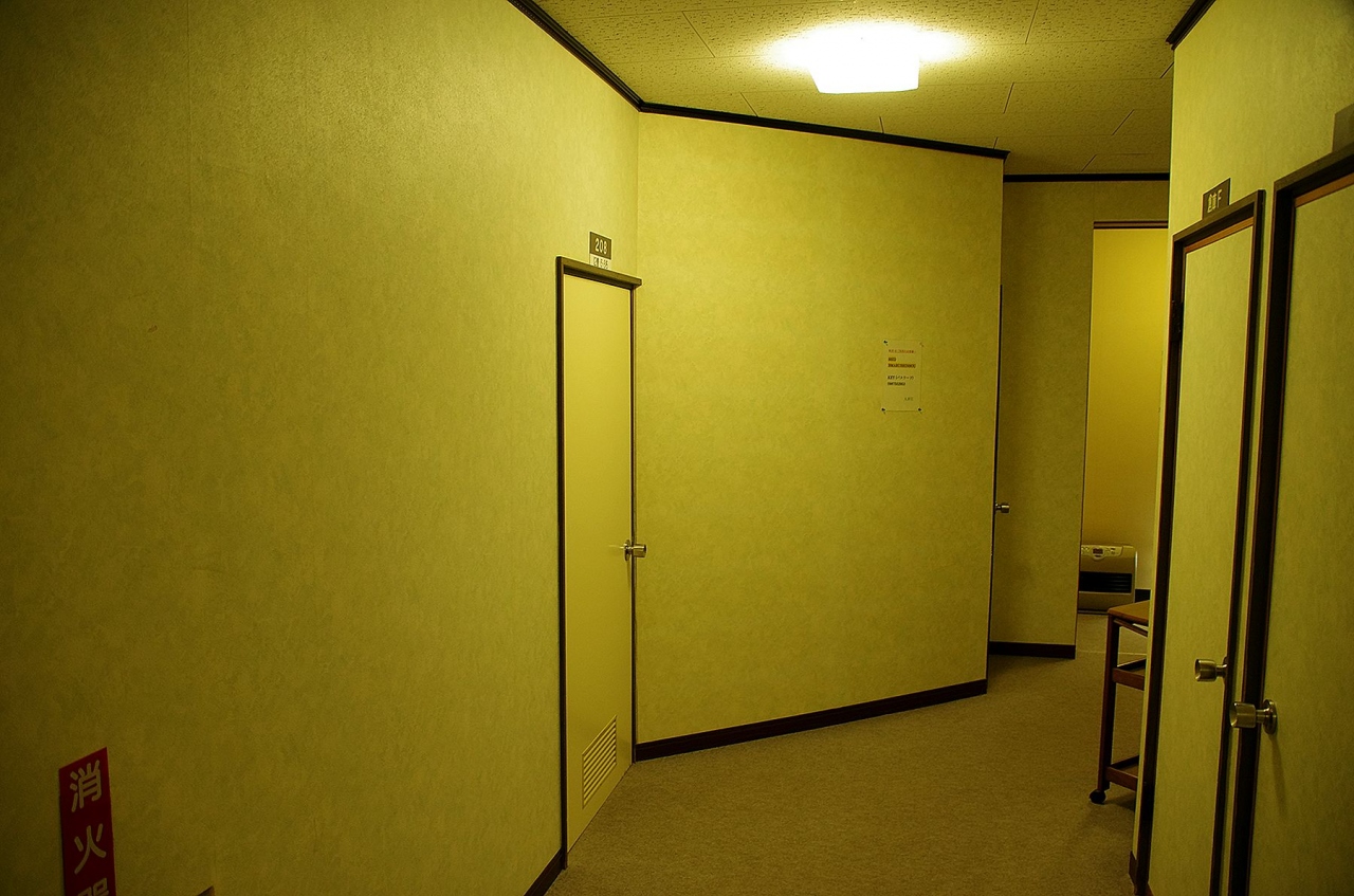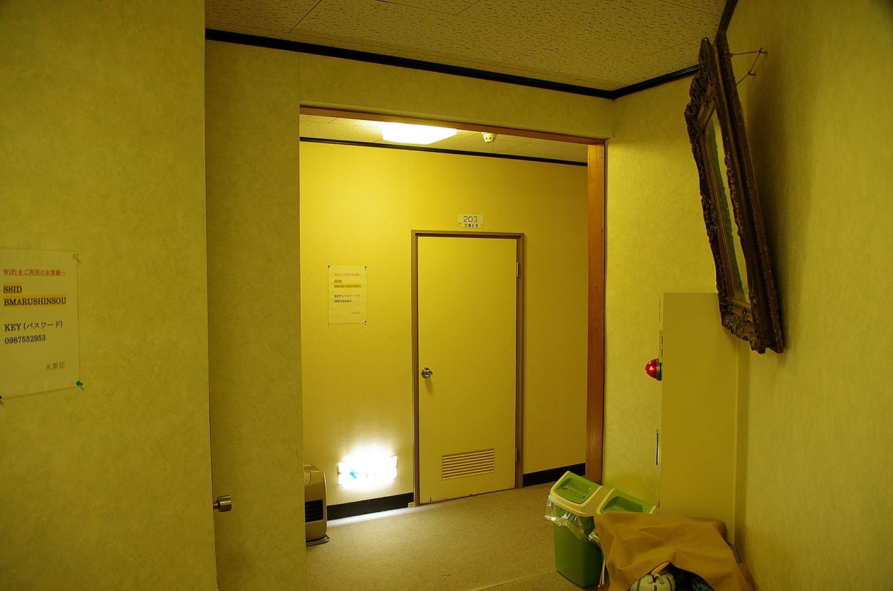 施設は1階がフロントとお風呂、2階が客室となっていますが客室には少し急くの字に折れた階段を昇って上がります。この階段が急だからか段差が少なく段数が多いので足腰がお弱い方は苦労されると思います。