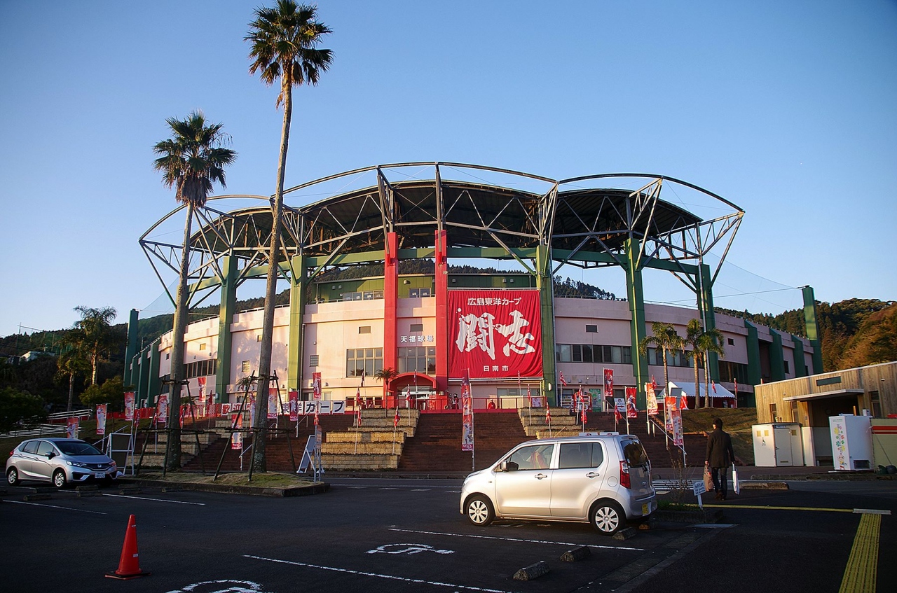 昨秋までは球場の前にある駐車場に駐車出来たのですが今春からは油津港の無料駐車場に駐めてシャトルバスもしくは徒歩にて球場入りするようになり不便になりました。