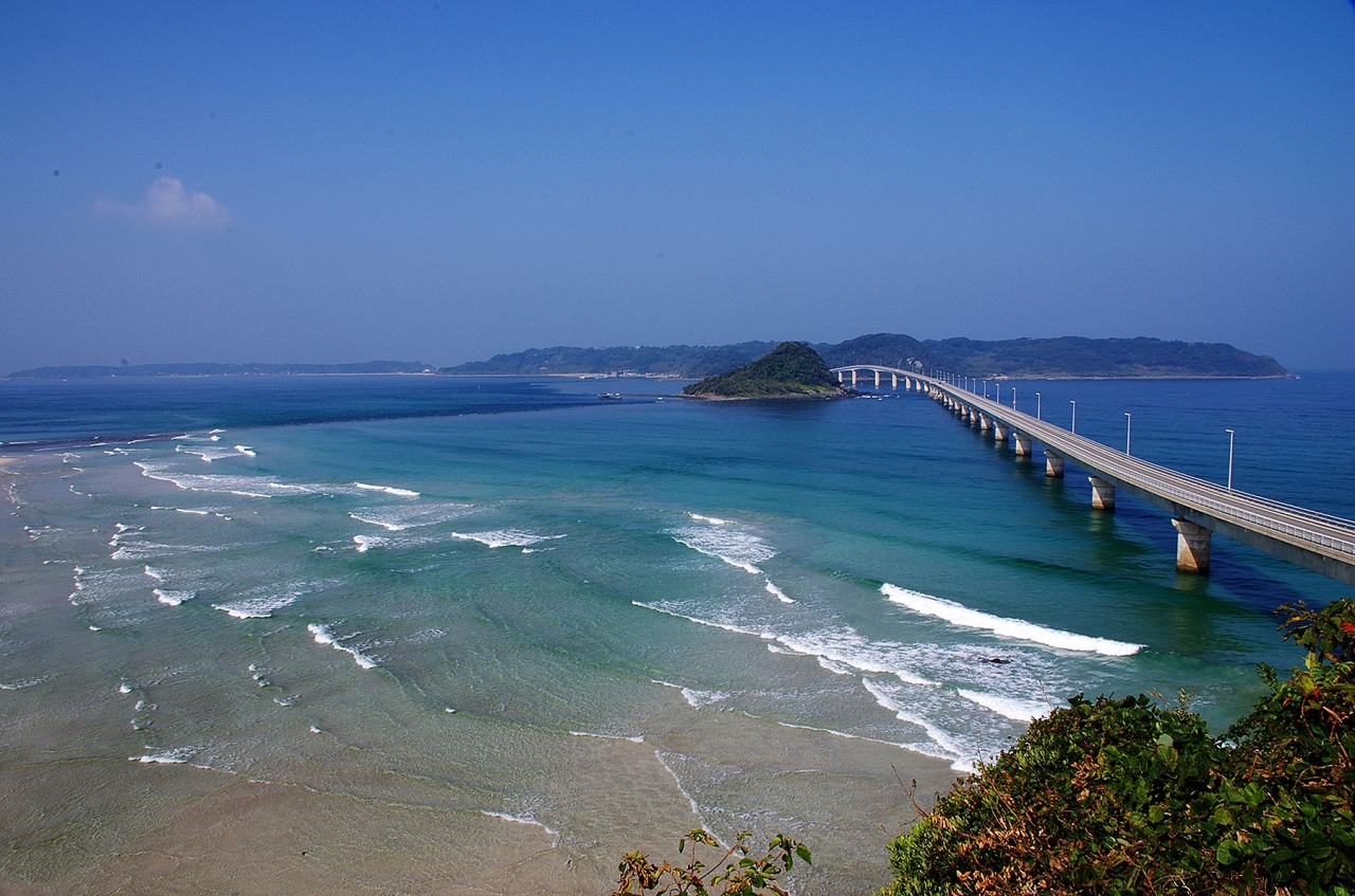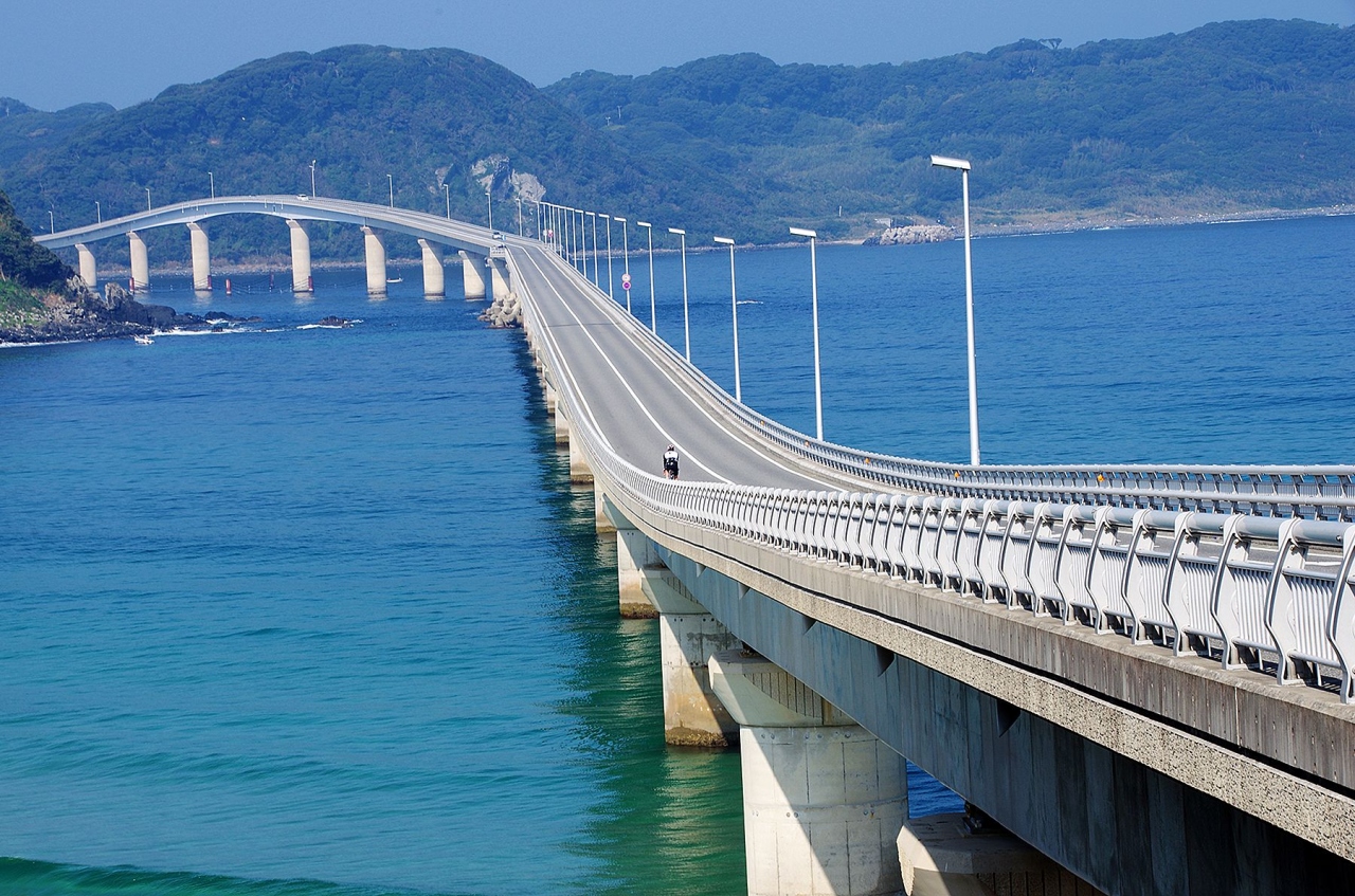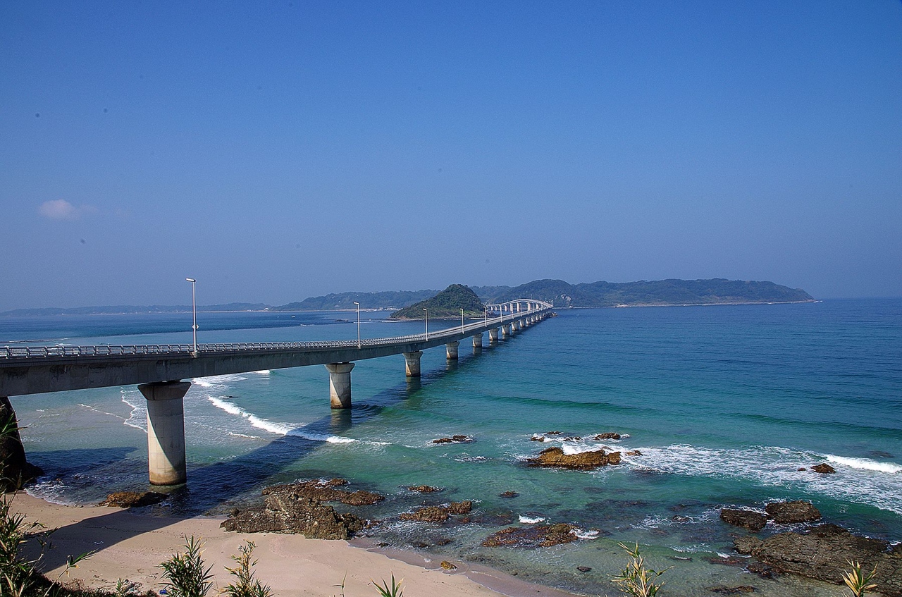 - 海の青と空の青が繋がる景色の真ん中にある白い大橋は絶景でした。