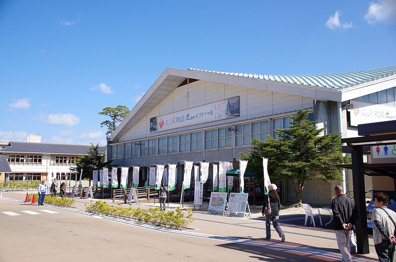 今年から吉田松陰先生の妹を主人公にしたNHKドラマ「花燃ゆ」が始まり、そのコマーシャルも兼ねて1年間限定で旧明倫小学校の体育館跡に文と萩物語 花燃ゆ大河ドラマ館が出来ました。
