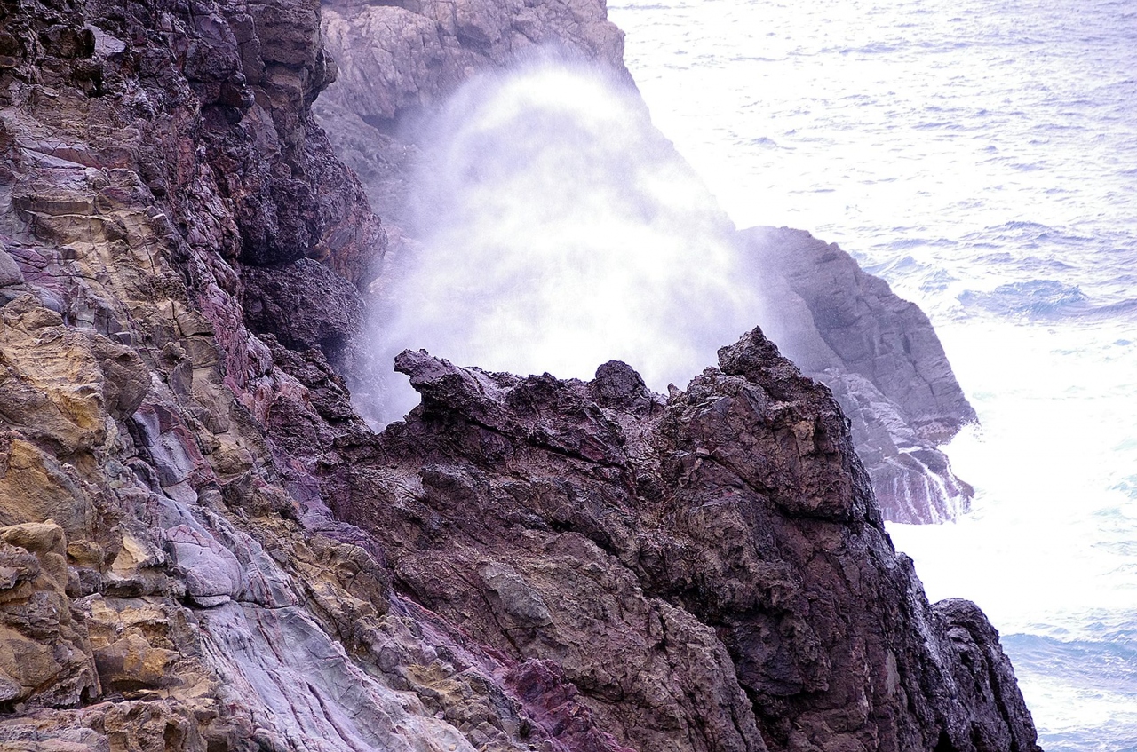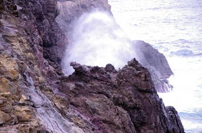 - 崖を波しぶきが駆け上る様は神秘さえ感じます。