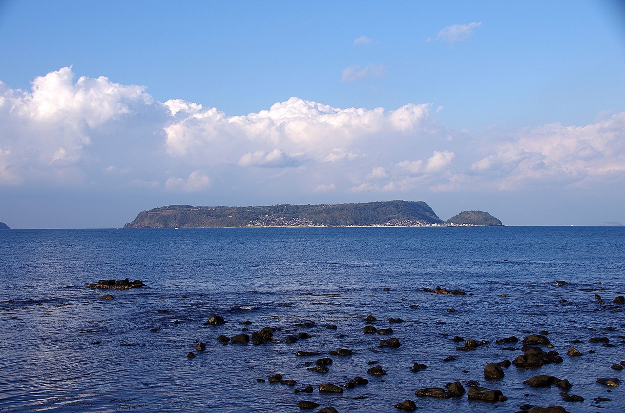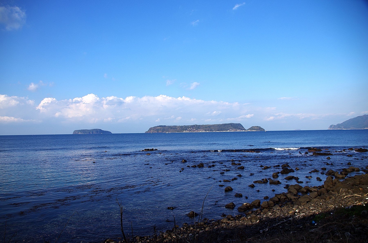 海岸は笠山の噴火で流れ出たマグマが固まった火山岩の赤黒い岩で覆われていて他では中々見れない景色でした。