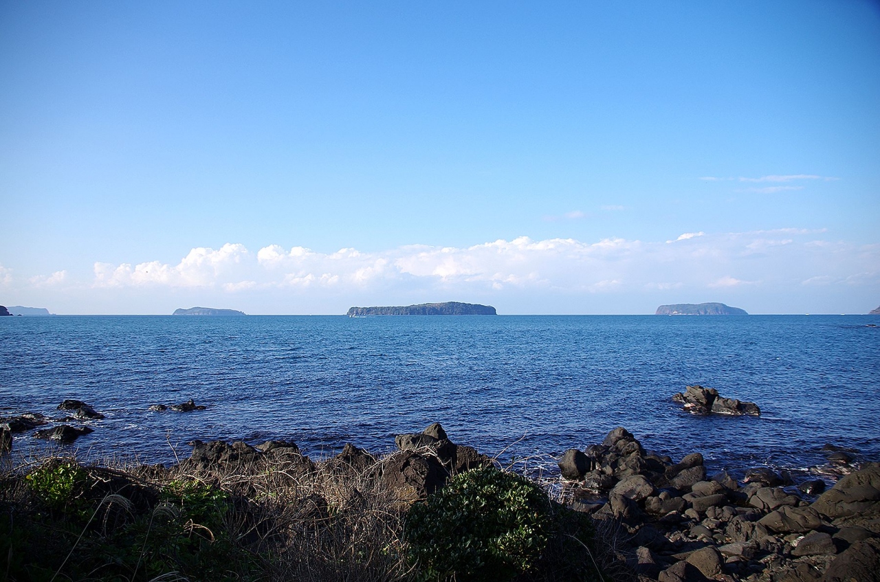 その日は快晴で海も凪で波が殆ど無く、萩六島を始めとする日本海に浮かぶ島々が青い空と青い海の間に挟まれて綺麗でした。