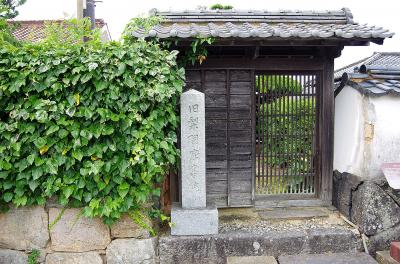 この前田孫右衛門旧宅跡も細い道路沿いの民家の前に石碑が建つのみで周りは現代の風景が立ち並ぶ。